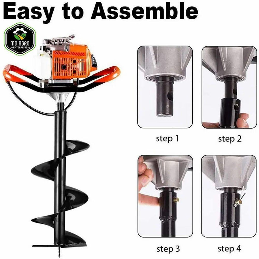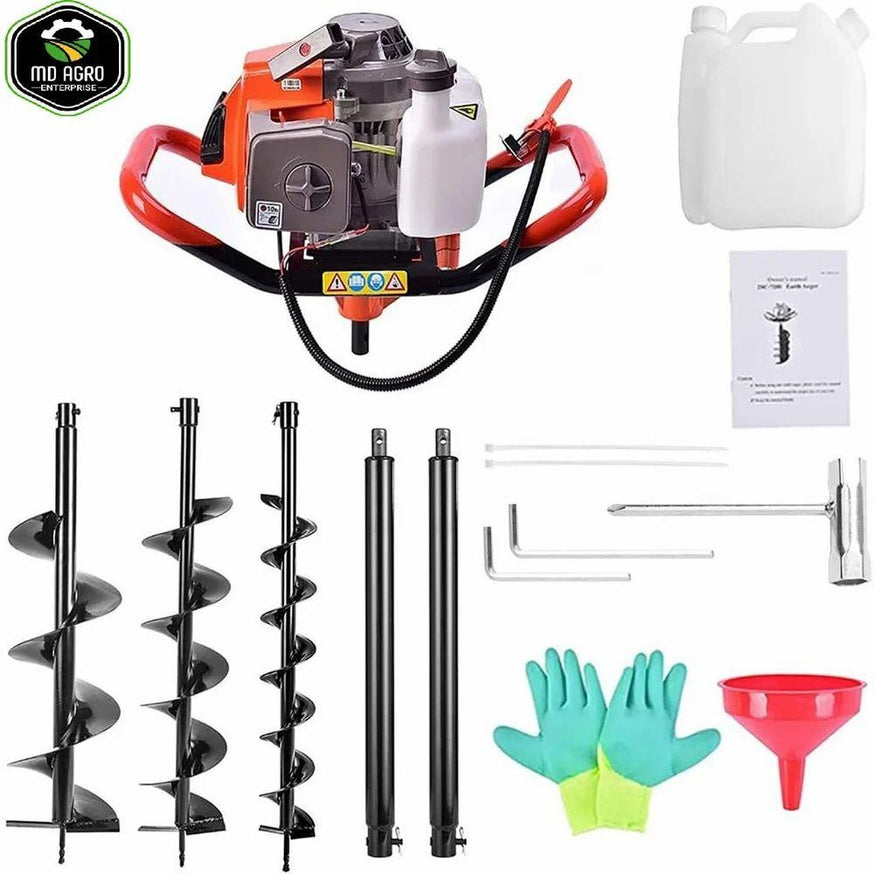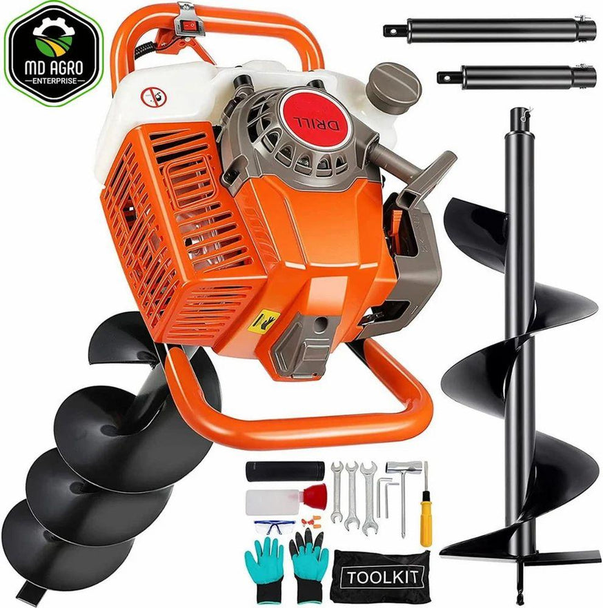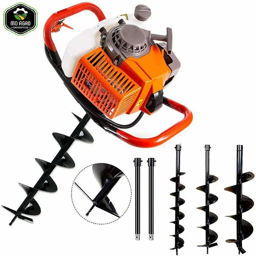 MD Agro 68cc હેવી ડ્યુટી પેટ્રોલ ઓપરેટેડ અર્થ ઓગર 8"(ઇંચ)/200mm ડાયા બિટ (ડબલ સર્પાકાર) સાથે