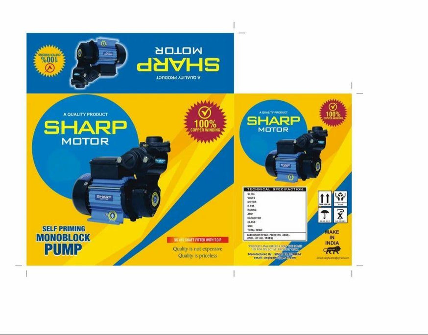 0.5 HP (હોર્સપાવર) રેટિંગ સાથે શાર્પ મોનોબ્લોક પંપ સેટ. મોનોબ્લોક પંપ સામાન્ય રીતે ઘરેલું અથવા કૃષિ હેતુઓ માટે પાણી પુરવઠા સહિત વિવિધ કાર્યક્રમોમાં ઉપયોગમાં લેવાય છે. 0.5 HP રેટિંગ પંપ મોટરની શક્તિ સૂચવે છે. વધારાની માહિતી: • આઇટમ કોડ: ગોલ્ડ • ઉત્પાદન ક્ષમતા: લુધિયાના • ડિલિવરી સમય: 2 દિવસ • પેકેજિંગ વિગતો: પરિવહન દરમિયાન ge. પેકેજને કેવી રીતે હેન્ડલ કરવું તેની સ્પષ્ટ સૂચનાઓ, ખાસ કરીને પરિવહન દરમિયાન ઓરિએન્ટેશનના સંદર્ભમાં, પંપને કોઈપણ નુકસાન અટકાવવા માટે શામેલ હોઈ શકે છે.