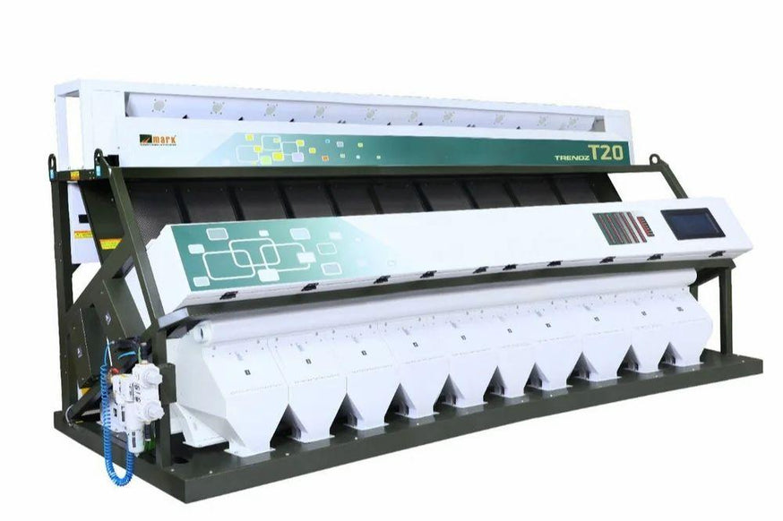 Ø 630 ચેનલો - 10 ચૂટ Ø મેટ્રિક્સ વાલ્વ Ø FPGA ડિજિટલ પ્રોસેસર ટેકનોલોજી Ø ટ્રાઇક્રોમેટિક RGB કેમેરા 5400 x 3 પિક્સેલ Ø આઉટપુટ 5 થી 7 TPH Ø એર: 180 CFM - 40HP કમ્પ્રેસર. Ø ચેનલોનું વિતરણ - પ્રાથમિક -5, માધ્યમિક -2, અંતિમ -1 Ø ઉત્પાદનો: ચોખા, દાળ, કઠોળ, અનાજ, મસાલા અને પ્લાસ્ટિક
