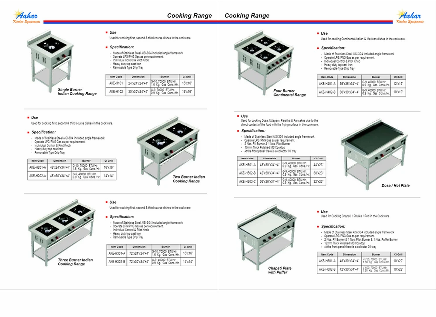 સાધનોનો પ્રકાર - ગેસ રેન્જ