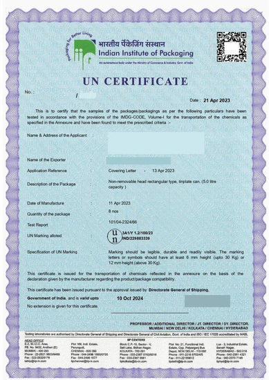 IIP પ્રમાણપત્ર, જેને UN પ્રમાણપત્ર તરીકે પણ ઓળખવામાં આવે છે, મેળવવા માટે અમારા ડિઝાઇન કરેલા પેકેજોને UN ધોરણો પર આધારિત પરીક્ષણ પાસ કરવાની જરૂર છે. અમારા પેકેજો કોઈપણ આબોહવાની પરિસ્થિતિઓનો પ્રતિકાર કરવા, પરિવહન દરમિયાન ઘસારો, આંચકો અને લીક પ્રૂફ માટે રચાયેલ છે. અમે ઉદ્યોગના જોખમી માલ માટે વિશ્વસનીય IIP પ્રમાણિત પેકેજ પ્રદાતા છીએ જેના પર તમે બેંક કરી શકો છો. UN પ્રમાણપત્ર, જે સામાન્ય રીતે IIP પ્રમાણપત્ર તરીકે ઓળખાય છે (ભારતીય પેકેજિંગ સંસ્થા દ્વારા જારી કરાયેલ પ્રમાણપત્ર), કોરુગેટેડ ફાઈબર બોર્ડ બોક્સ, મેટલ બોક્સ, પ્લાસ્ટિક ડ્રમ, એલ્યુમિનિયમ કેન, MS ડ્રમ્સ, ફાઈબરબોર્ડ ડ્રમ્સ, પ્લાયવુડ અને લાકડાના બોક્સ જેવા તમામ પેકેજો માટે. , વણેલી કોથળીઓ (HDPE બેગ્સ), જમ્બો બેગ્સ અને મધ્યવર્તી બલ્ક કન્ટેનર. વધારાની માહિતી: • આઈટમ કોડ: પ્રમાણપત્ર • ઉત્પાદન ક્ષમતા: NA • ડિલિવરી સમય: 4 થી 5 કામકાજના દિવસો • પેકેજિંગ વિગતો: ઉત્પાદન જરૂરિયાતો અને સરકાર મુજબ. નિયમો અને નિયમો.