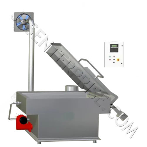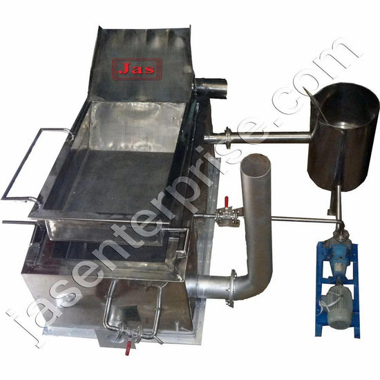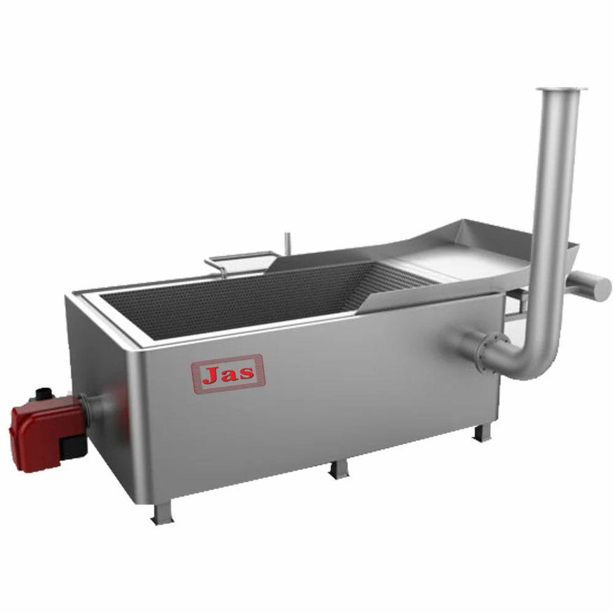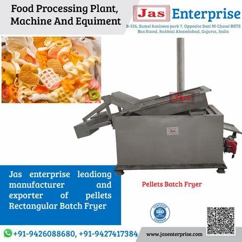 आयताकार बैच फ्रायर स्टेनलेस स्टील बॉडी में बना होता है जिसमें स्टेनलेस स्टील बॉडी पर पैन लगा होता है। पैन में एक तरफ से तेल इनलेट और दूसरी तरफ से आउटलेट के लिए कई उद्घाटन होते हैं, तेल का प्रवाह एक तेल परिसंचारी पंप द्वारा नियंत्रित किया जाता है। पैन में गर्म तेल हीट एक्सचेंजर से आ रहा है और पैन के किनारे से बाल्टी प्रकार के फिल्टर में जा रहा है। गर्मी के नुकसान से बचने के लिए पैन को नीचे से ठीक से इंसुलेट किया गया है। खाद्य तेल को लगातार छानने के लिए निरंतर बाल्टी प्रकार के फिल्टर। फ्राइंग सिस्टम डिजिटल तापमान नियंत्रक और कंट्रोल पैनल से जुड़ा हुआ है। इस फ्रायर की अनूठी विशेषता इसकी झुकाव प्रणाली है जो एक समान और निरंतर उत्पाद गुणवत्ता के लिए तलने के बाद एक ही झटके में उत्पादों को उतारने में सक्षम बनाती है। लगभग, सिंगल फेज़ • ईंधन: - डीजल / गैस • निस्पंदन प्रणाली: - बाल्टी प्रकार • प्रणाली की खाद्य तेल धारण क्षमता: - 130 से 145 लीटर उत्पाद उत्पादन क्षमता ईंधन खपत आलू के चिप्स 50-55 किलोग्राम/घंटा 11-12 लीटर/घंटा केले के चिप्स 50-55 किलोग्राम/घंटा 11-12 लीटर/घंटा चना दाल 100-110 किलोग्राम/घंटा 11-12 लीटर/घंटा मूंग दाल 90-95 किलोग्राम/घंटा 11-12 लीटर/घंटा