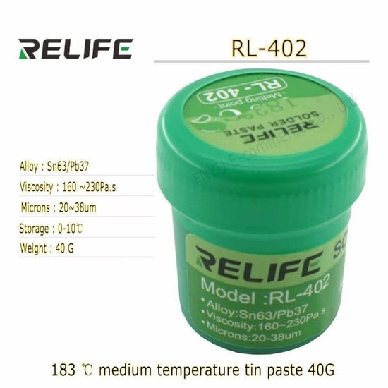 सोल्डरिंग पेस्ट RL-402 40g Sn63/Pb67 183°C iPhone फोन के लिए सोल्डर पेस्ट BGA रीबॉलिंग सोल्डरिंग अतिरिक्त जानकारी: • आइटम कोड: rl402 • डिलीवरी का समय: पूरे भारत में 3-4 दिन • पैकेजिंग विवरण: 100 शिपिंग शुल्क