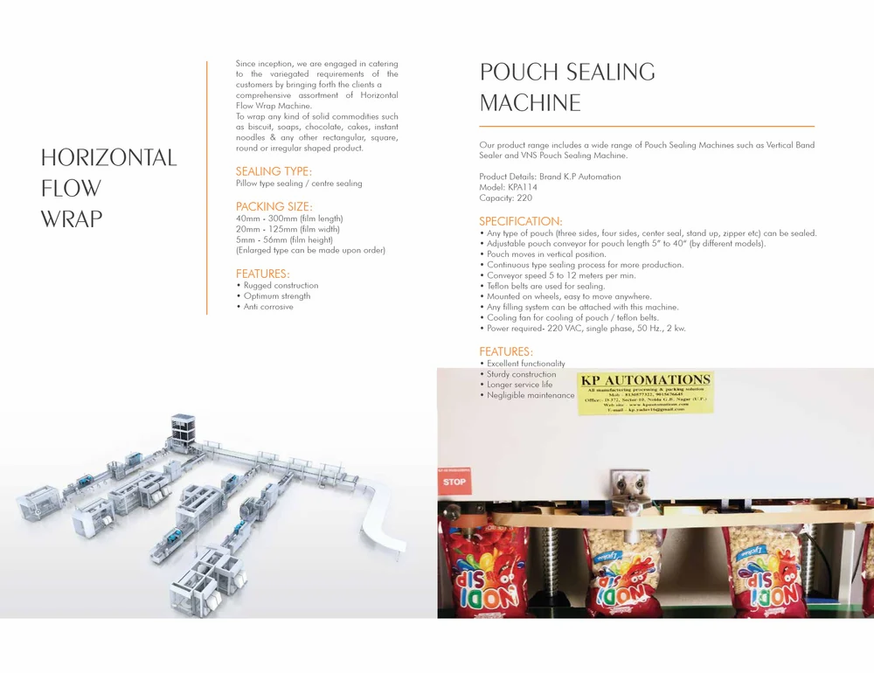 क्षैतिज प्रवाह आवरण मशीन - केपी ऑटोमेशन प्रवाह आवरण ग्राहक की आवश्यकताओं के अनुरूप तैयार किए जाते हैं और अधिकतम उत्पादकता प्रदान करते हैं।