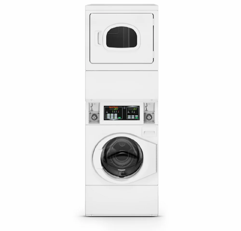 Speed Queen® stack washer/dryers offer all of the power and performance you’ve come to expect from our conventional washers and dryers–while taking up half the space. Take Control with Speed Queen® Run your business or laundry room the way you want with Speed Queen® controls. Make it advanced with options like Quantum® controls and Speed Queen Insights that provide adjustable vend pricing, programmable shutdown times, service alerts, business data and more. Or keep things streamlined with coin slides and simple digital or analog controls. More Efficient 20% larger capacity washtub than previous models uses only 6% more water for improved efficiency without sacrificing performance. Better Extraction 440 G-Force extraction removes more water from loads during the final spin—shortening dry times and lowering energy bills in the process. Revolutionary Balancing Technology Innovative balancing technology automatically redistributes uneven loads for consistent cycle times, minimized vibration and 2.5 times less noise. Better Dry Quality Extended Tumble helps eliminate wrinkling by tumbling for two minutes at 20-minute intervals if the door isn’t opened.