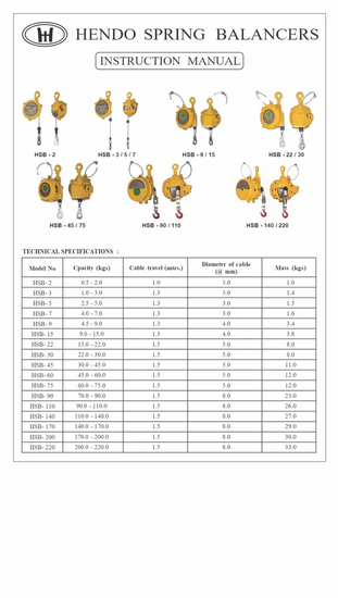 Brand: HendoModel: HSB-2Capacity: 0.5 Kg To 2.0 KgWire Rope Dia: 3.00 mmTravels: 1.00 Meters Additional Information: • Item Code: HSB-2 • Delivery Time: 2-3 Days