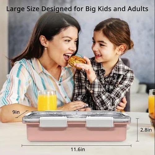 Stainless Steel Lunch Box for Adults and Kids 4 Compartments Sealed with Lids Multicolor: Stainless Steel Lunch Box for Kids, Tiffin Box, Lunch Box with Spoon and Fork, Lunch Box for Kids, Lunch Box, Lunch Box for Office Women and Men, Stainless Steel Lunch Box For Kids - This lunch box will keep your food, sandwiches, soups, and beverages fresh for lunch, So You Can Pack Your Kids', husband, Lunches in the Morning, And It Will Stay Warm until Lunchtime. Easy to keep in lunch bags, backpacks or handbag Material: This lunch box is made up of food grade SUS304 + PP material Size: of stainless-steel tiffin lunch box is 25X18X6.5 cm Lunch box for kids, has a beautiful Breathable button design and seal ring design, and it prevent freshness and overflow or leakage, and its inner surface is very smooth. The meal preparation container is also easy to clean. Thermal Technology - The built-in water injection feature makes it easy to heat or cool. Simply add hot or cold water into the bottom basin before breakfast, lunch, or dinner. The bottom bowl is made of food grade PP and can also be used to hold fruits or salads. The lunch box itself does not have a long-term heat preservation effect, it needs to be added with hot water to achieve heat preservation, and the heat preservation time is about 1 hour.