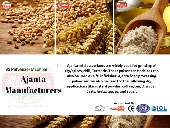 We, "Ajanta Manufacturers" are counted among the foremost manufacturers and suppliers of a comprehensive range all type of Flour Mill & Food Processing Machine Units. Designed and manufactured with utmost precision, the range comprises Domestic Flour Mill, Vertical Flour Mill, and Food Processing Machine unit. All these machines are engineered with utmost perfection making use of superior grade raw material and components, which are sourced from reliable and certified vendors of the industry.