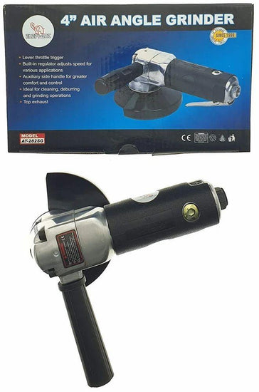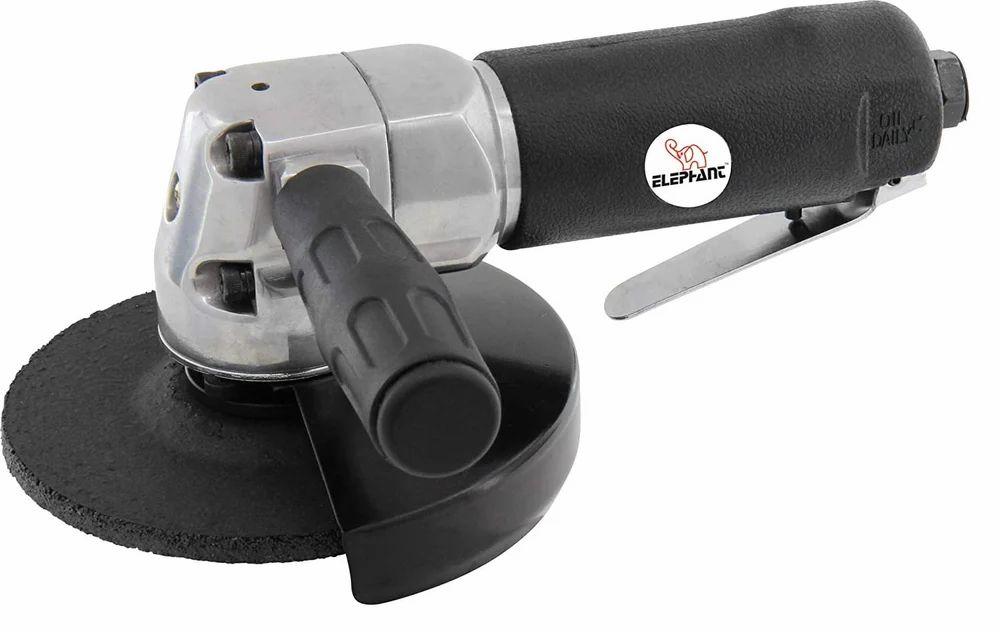 Elephant 4-inch Air Angle Grinder. About this item • Model No. : AT-282SG ------------- Free Speed: 11000 RPM. • Spindle Size: 3/8"-24UNF or 5/8-11UNC or M10x1.5. • Grinding wheel: 4" -------------- Air Inlet (PT) : 1/4". • Air Hose (ID) : 3/8". • Avg. air consumption: 5 SCFM. • Working pressure: 90 PSI (6.3 BAR). • Weight: 1.38 KGS (3.04 LBS). • Dead handle for easy operation control • Come with roll-type throttle • Made for removing rust, smoothing melds