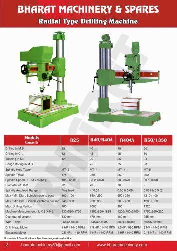 Our organization takes pleasure to introduce its business as one of the leading entity offering Radial Type Drilling Machine. This machine is utilized in variegated industrial purposes. To make sure that the machine stands the up to prevailing demands of the drilling; our professionals track the manufacturing process of this machine in progressive manner. The structure alteration and axial modification applied to gears, and grinder, which efficiently improves the performance of mesh gear reducing the drilling impact and noise of tooth width load. Features: • Equipped with safety system • Hardening treatment • High precision machineApplications: • Drilling • Boring • Medium-load milling