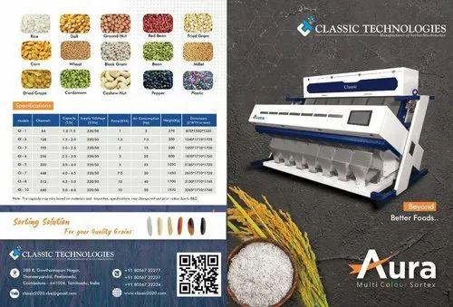Features: Camera: Precise image scanning with 16200 Pixel lens with 20,000 scans per second. Electronic: Precise image scanning with 16200 Pixels lens. Technology: Highly integrated real time automated (IoT) technology and 3d recognizing technology for accurate identification of material. Interior Design: Special design for sorting colour and shape to ensure accuracy. Services: Self-diagnosis and self-tuning technology for easy serviceability, Low maintenance and less power consumption. Quality: We provide outstanding products and unsurpassed service that, together, deliver, premium value to our customer. Interface: User friendly options on touch screen for easy access of the interface. Electro: Electro-magnetic ejector for accurate flow of air. Uniform: Uniform flow feeder for uninterrupted inputs. Additional Information: • Delivery Time: Immediate
