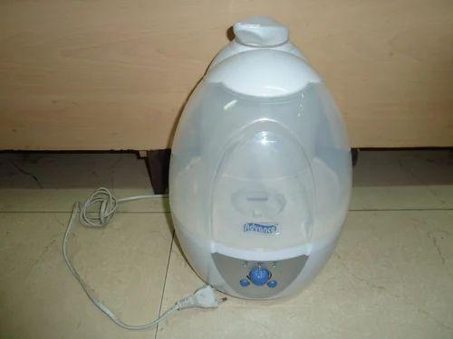 A metal diaphragm vibrating at an ultrasonic frequency creates water droplets that silently exit the humidifier in the form of a cool fog. Ultrasonic humidifiers use a piezo-electric transducer to create a high frequency mechanical oscillation in a body of water. The water tries to follow the high frequency oscillation but cannot because of its comparative weight and mass inertia. Thus, a momentary vacuum is created on the negative oscillation, causing the water to cavitate into vapor. The transducer follows this with a positive oscillation that creates high pressure compression waves on the water’s surface, releasing tiny vapor molecules of water into the air. This is an extremely fine mist, about one micrometre in diameter, that is quickly absorbed into the air flow. Specifications:- • Cool Hot mist digital humidifier • 220V/50Hz, cool mist 25 W, hot mist 100-280W • Water tank capacity:6 L; • Adjustable mist output, max 300ml/h; • With digital screen display and remote control; • With LED light; • Adjust the humidity to fresh the air. • Cool Hot mist humidifier • Automatically switch off when water runs out;