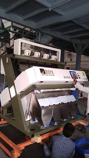 Ø63 channels – 1 chute ØMatrix Valves ØFPGA Digital Processor Technology. ØTrichromatic RGB Camera 5400 x 3 Pixel ØOutput 800 kgs to 1.2 kgs per hour ØAir: 30 CFM 10HP Compressor. ØChannels Distribution – Primary - 1 ØProducts: Rice, Dhal, Pulses, Grains, Spices & Plastics