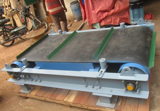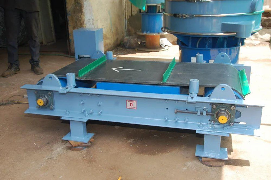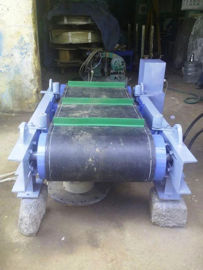 Self Cleaning Overband Magnetic Separator are designed for installation over conveyors where tramp iron contamination exists and needs to be removed for protection of subsequent processing machinery or providing a cleaner product. The self-cleaning type uses a two-pulley design. Parallel self-cleaning magnets are mounted in line with the material flow, while transverse self-cleaning magnets remove the ferrous materials over the side of the conveyor. Self Cleaning Magnet is available in permanent magnet and electro magnet. Self Cleaning Components: • Shaft mounted speed reducer • Heavy cleated rubber belt • Self-aligning sealed bearings • Four point suspension • Rugged structural steel frame
