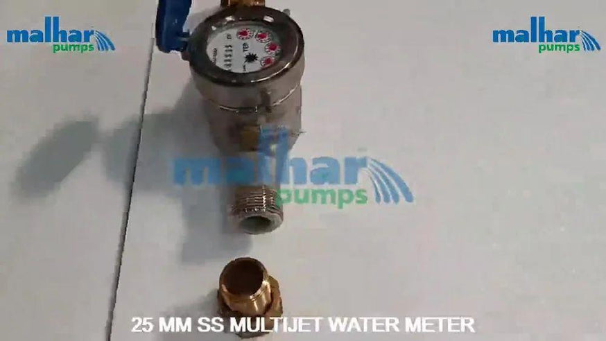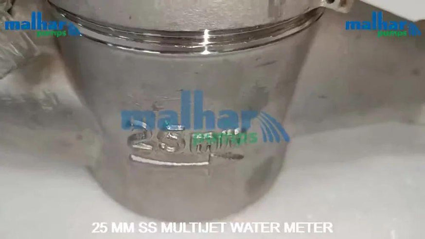 Domestic water meters:-"Stainless Steel Multijet Water Meter - 25mm"Multi jet class b, 15mm -40mm (½ ”- 1 ½ ” )An inferential, multijet, dry type water meter with magnetic drive and vacuum sealed register. Standards:-Conforms to iso -4064 , class b. Construction:-Highly sensitive to low flow rates and very accurate over its entire flow range. Low head loss. Vacuum sealed, leak proof and try totaliser. Self – lubricating gears. Long maintenance free working life. Options:-Remote reading facility/pulse output available on request. Hot version available up to 90ºc