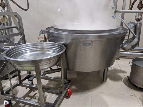 Capacities: 22Kg batchAdditional Applications:* Kaju Processing for Kaju Katari / Roll * Ghee Processing * Badam Katri Manufacturing * Soan Papdi Manufacturing * Khoa Processing etc. 1. Steam jacketed vessel having all contact parts of ss-304 (8% Nickel) 2. Our Machine shall Incorporate Fitting like ARV, SRV, Product outlet valve, strainer, steantrap, pressure gauge etc. 3. High quality ceramic insulation with ss 304 cover. 4. The machine is fitted with geared motor, PTFE lined stirrer, 5. Special tilting arrangement provided for removing processed material. Additional Information: • Pay Mode Terms: T/T (Bank Transfer), RTGS • Port of Dispatch: vasai - east, mumbai • Production Capacity: any • Delivery Time: 30 days. • Packaging Details: PLASTICKS RAPPING
