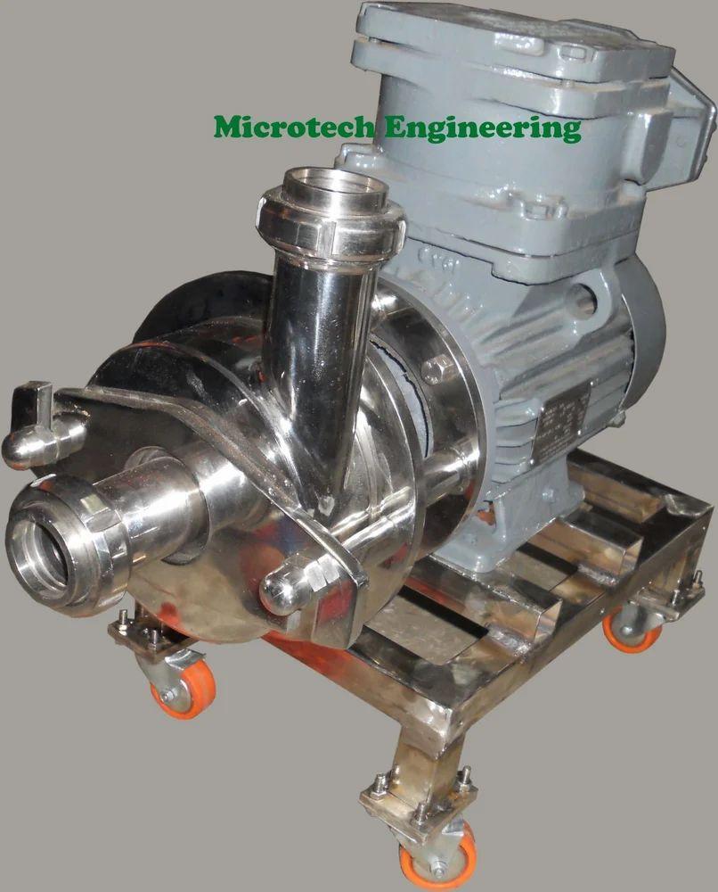 Head: 48 meterCapacity: 80 m3/hDelivery size: 12mm to 65 mmTemperature: -10 to 95 degreeCelsiustest pressure: 10 kg/cm2Standard futures: • Centrifugal single stage• Flange as per din standard• Back pull out design• Open / close impeller• Shaft sealing by single / doable mechanical seal• Sealed grease lubricated, deep grove ball bearing• The pump handle liquid having viscosities up to 1500 centrioles• Also with flame proof motor Optional futures: • shaft sealing by gland packing• bearing lubricating by oil• ANSI drilling on DIN flanges• trolley mounting arrangement• various type of connection Material: • Casing: st. Steel ( CF8 / CF8m )• Shaft: st. Steel ( SS 410 / SS 316 / SS 304 )• Impeller: st. Steel ( SS 410 / SS 316 / SS 304 )• Back Plate: st. Steel ( SS 410 / SS 316 / SS 304 )• Mechanical Seal: TC/TC, SIC/SIC TEFLON/ GFT• Motor cover: SS 304 , SS 316• Gasket: Viton / Nitrile/ Silicon / PTFE Reliability: The pump are hydraulically designed for maximum efficiency. Every pump passes through stringent process & quality control plans and is designed to give longer life with consistent performance and trouble free service. Application:- • Dairy industries• Food processing plant• Pharmaceutical industries• Sugar & confectionery• Bottling plants• Distillery• Beverages• Water treatment plants• Colors dies & pigments / paints• Descaling application• Sagar industries• Hot & cold water pumping• Sparkling filter press