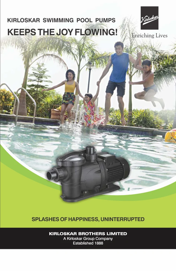 We have intense devotion in manufacturing and supplying wide gamut of Swimming Pool Pump. These pumps owing to their sturdy design and high pumping efficiency are widely reckoned among our clients for use in swimming pools. We design these products in varied specifications as per latest industrial norms for serving varied needs of customers with uttermost perfection. We supply these pumps at reasonable price tags to our customers. Features: - Corrosion protected shell to prevent water contacting motor directly. - Single thumb screw lid to ensure excellent sealing. - Easily assemble pump basket. - Pumps baskets size to allow twice normal dirt-load before cleaning. - High performance to ensure maximum turnover rate of water. - Improved suction characteristics to ensure maximum efficiency from automatic sweeper. - Lid designed to eliminate suction leak and to allow positive checking of lid seal under load. - Lp55 waterproof standard. - Designed for easy maintenance and repairs. - Low cost of spare parts. Additional Information: • Delivery Time: 2-3 week