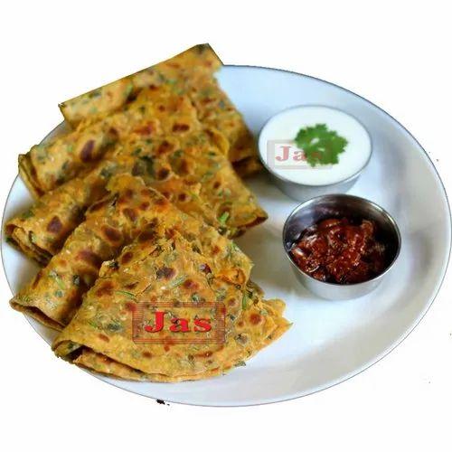 Methi thepla or simply thepla, a type of chapati (unleavened Indian flatbread), is a classic staple of Gujarati (Western India) cuisine. Thepla is typically made with flour, oil, water, salt, yogurt, large amount of fresh herbs, such as methi (fenugreek leaves), sometimes coriander leaves and a blend of spices including chili, turmeric and cumin powder. After the dough is formed and rested, it’s then divided into little equal sized balls, and then rolled out flat into round flatbreads, finally cooked on a hot griddle or pan. Thepla is fragrant and has a longer shelf-life due to the large amount of spices used in the recipes, it’s often served with pickles, chutney and curries. JAS-APCM-601 Auto pressing type Thepla Making Machines are ideal for making thepla, chapati as well as numerous other types of flatbreads. The machines are designed to work with dough of various different consistency, viscosity and texture the dough into individual portions weighing from 15 gram per pc up to 200 gram per pc, with the capacity from 1,000 pcs/hr. Thepla Making Machine required following machine • Dough Kneader • Dough Ball Making Machine • Thepla Making Machine • Hot Plate