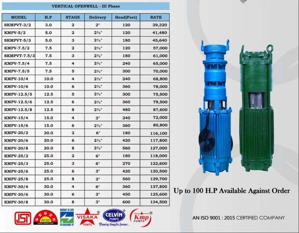 We are engaged in offering a wide range of Three Phase Vertical Openwell Pump to our clients. Our range of all products is widely appreciated by our clients.