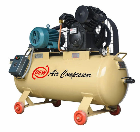 DEW 2 stage air compressor is a type of compressor which compresses the air in two stages. In this air compressor, the fluid compresses two times. It has two cylinders, and each cylinder has a piston. This air compressor uses two pistons.