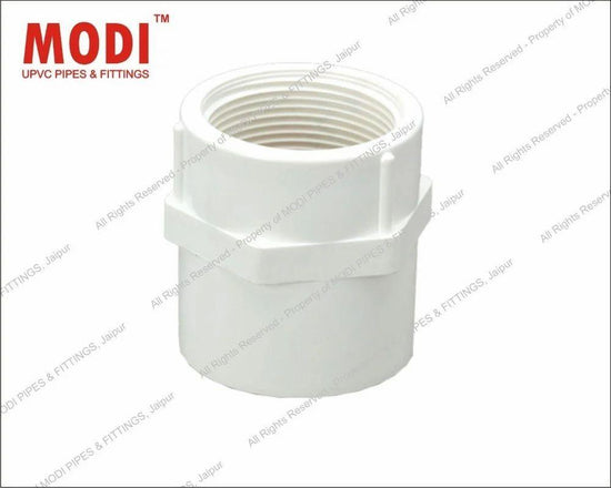 Modi UPVC Fittings are manufactured with high precision "Injection Molding" machines using high quality PVC Raw MaterialModi UPVC FTA (Plastic Threaded) is available in Sch-80 and is manufactured conforming to standards of ASTM D 2467 & is used for cold water application and for leakage free joints.
