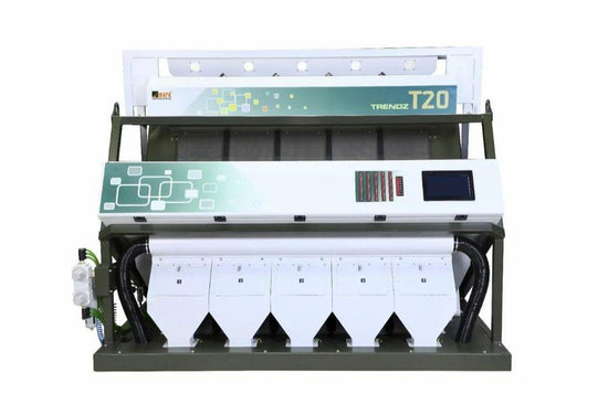 Ø315 channels - 5 Chute ØMatrix valves ØFPGA Digital Processor Technology. ØTrichromatic RGB Camera 5400 x 3 Pixel ØOutput: 2.5 to 3.5 TPH ØAir: 90 CFM. 25HP Compressor. ØChannels Distribution -Primary-3, Secondary-1, Final-1 ØProducts: Rice, Dhal, Pulses, Grains, Spices & Plastics