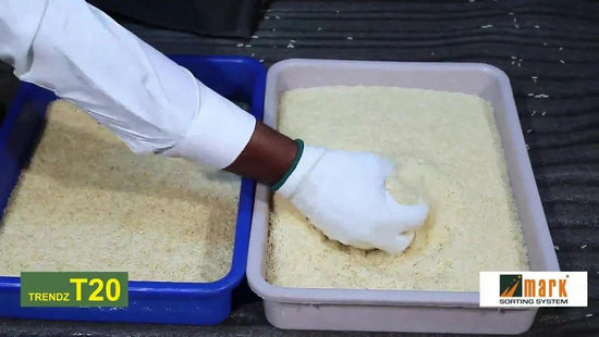 Ø 756 channels – 12 Chute Ø Matrix Valves Ø FPGA Digital Processor Technology Ø Trichromatic RGB Camera 5400 x 3 Pixel Ø Output 5 to 7 TPH Ø Air: 180 CFM - 40HP Compressor. Ø Channels Distribution – Primary -5, Secondary-2, Final-1 Ø Products: Rice, Dhal, Pulses, Grains, Spices & Plastics