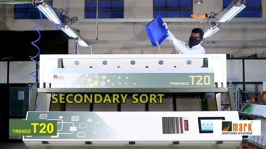 Ø252 channels – 4 Chute ØMatrix Valves ØFPGA Digital Processor Technology. ØTrichromatic RGB Camera 5400 x 3 Pixel ØOutput 1.5 to 2.5 TPH ØAir: 72 CFM - 20 HP Compressor. ØChannels Distribution - Primary-2, Secondary1, Final-1 ØProducts: Rice, Dhal, Pulses, Grains, Spices & Plastics